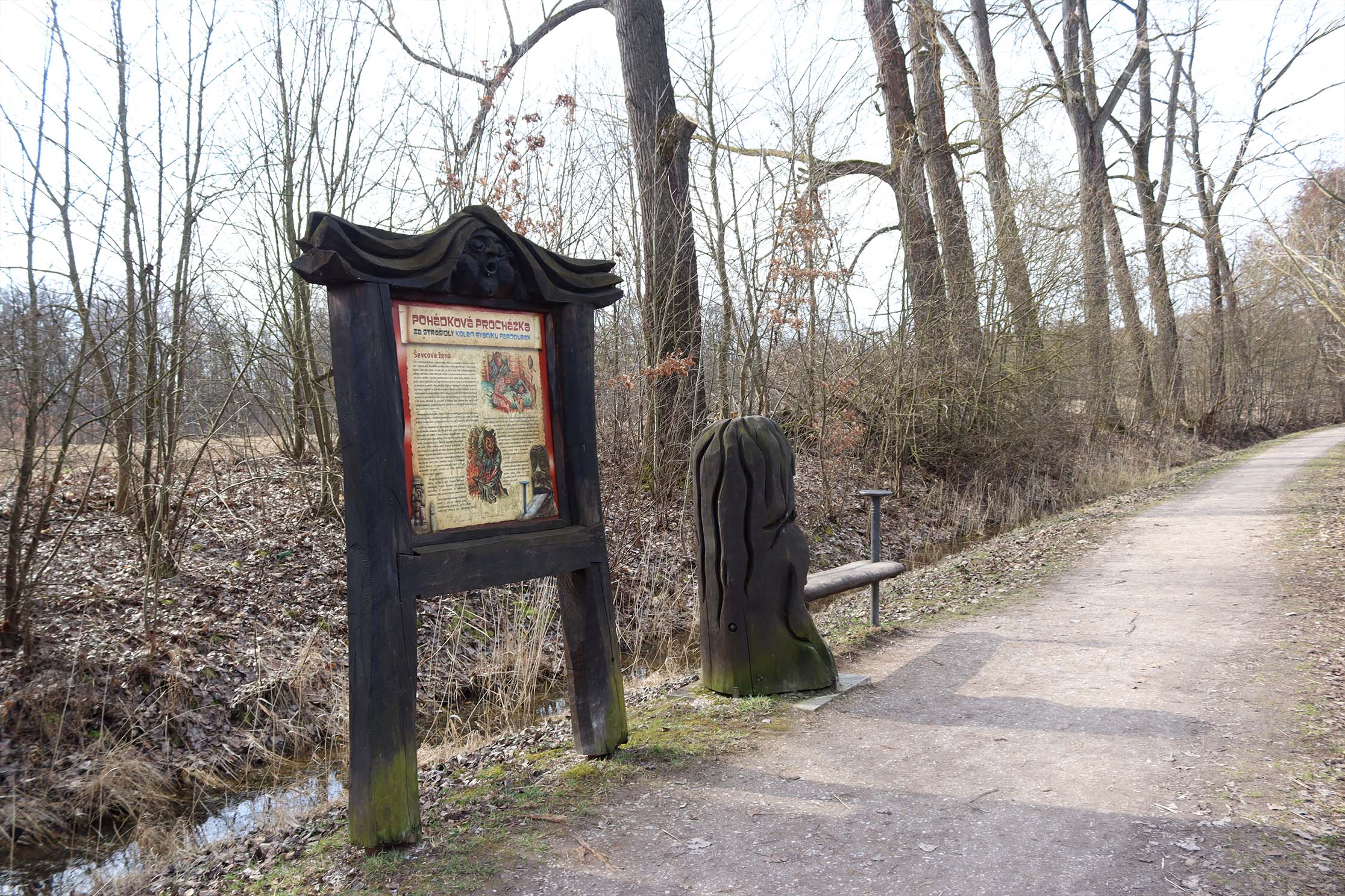 A pak přijde moment, který vás možná překvapí. Okolí rybníka totiž není jen o odpočinku, vede tudy pohádková stezka se strašidly. Nenápadná, hravá a milá. Procházka se tak mění v malý příběh, který si užijí děti i dospělí.