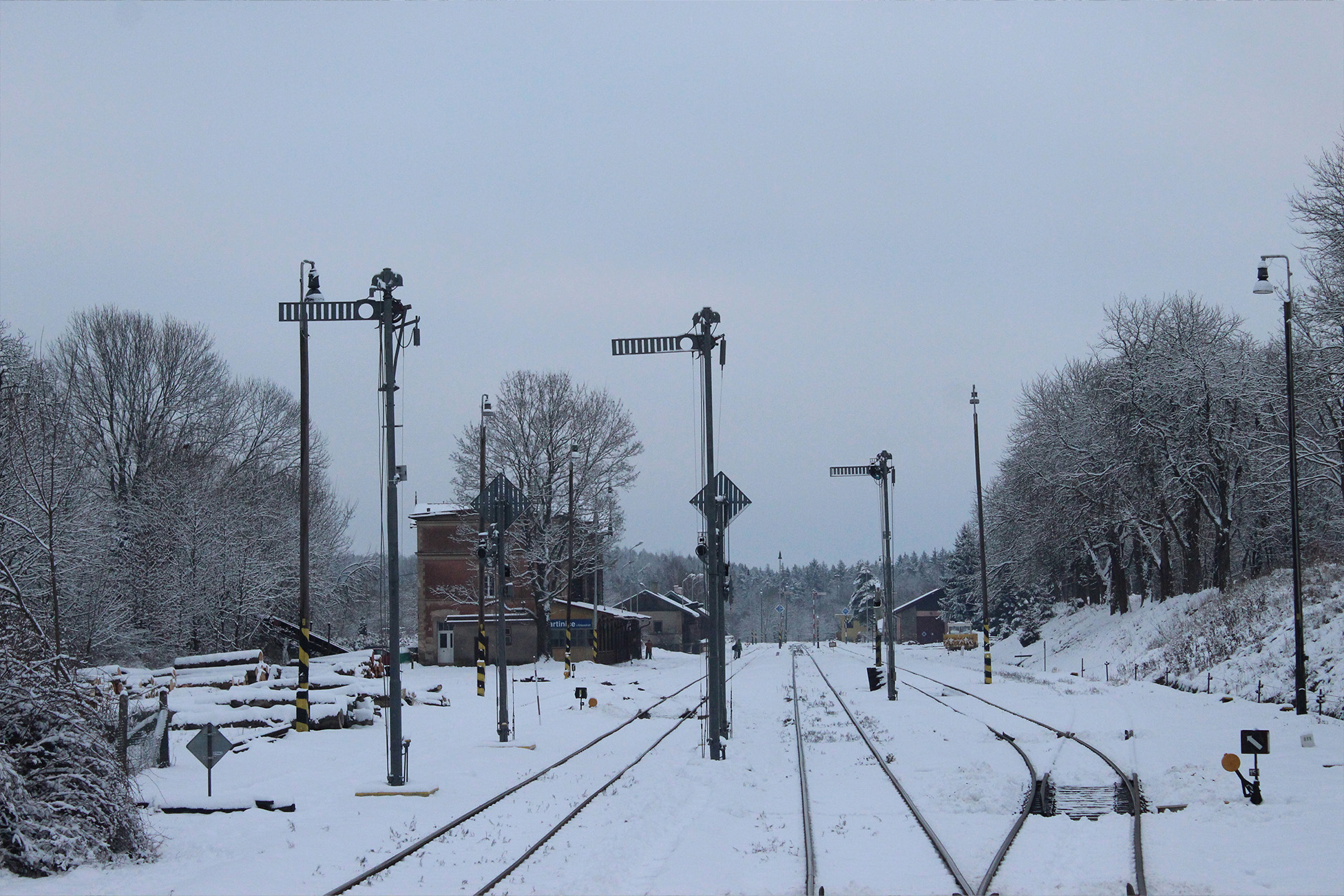 A pak přichází jeden z největších klenotů celé tratě, stanice v Martinicích. Martinice v Krkonoších nejsou jen zastávkou, jsou návratem v čase. Dodnes tu slouží mechanická návěstidla, jejichž pohyb má v sobě něco téměř poetického. Žádná elektronika, jen ocel, lana a lidská ruka. Když se rameno návěstidla pomalu zvedne, máte pocit, že sledujete živý kus historie.